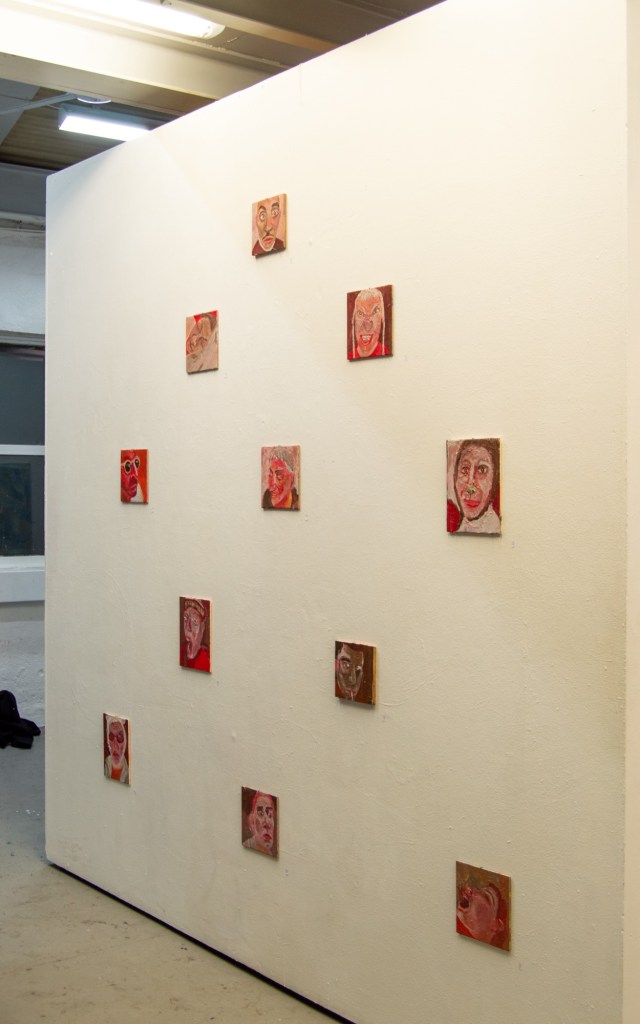 Jeg valgte ut 11 personer jeg har eller har hatt en sterk relasjon til og malte de samme fjesene over en periode på cirka 6 måneder. Dette var en blanding av både venner og familie. Mitt mål var å se hvordan min relasjon til dem endret seg over tid. Dette er noe som kan sammenlignes med å prøve å se hår vokse – altså vanskelig. Det samme er det når man skal prøve å kjenne på hvor man står med ulike relasjoner. Jeg tror maleri kan få det som vanligvis virker usynlig, som hele tiden er i endring, til å visualiseres
