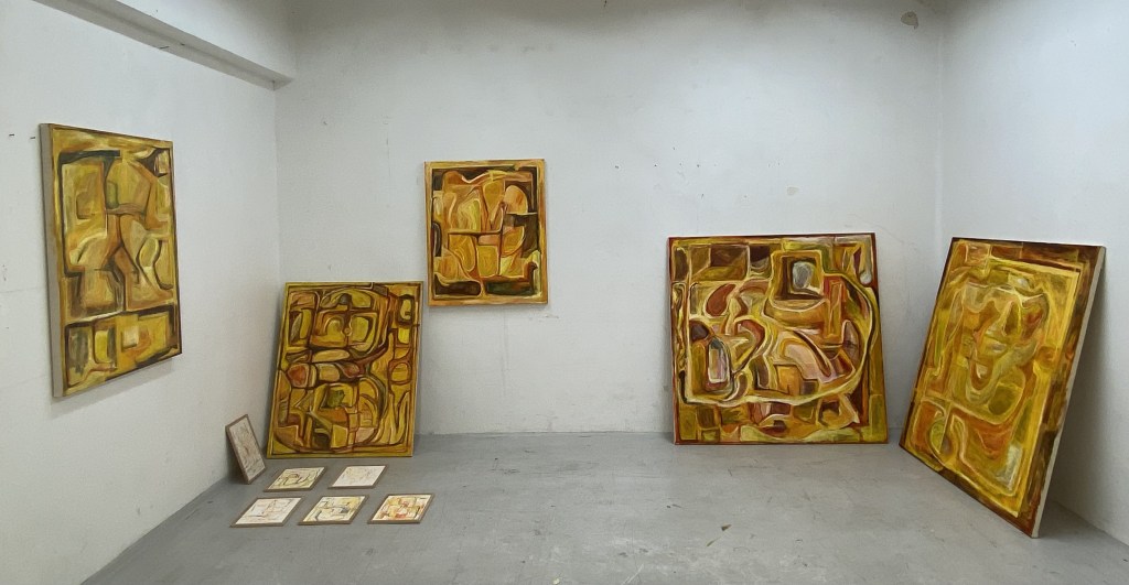 Dette prosjektet har vært sterkt vendt mot dybden i fargeflater, begrenset og gjentakende gul palett hvor jeg har vært opptatt av hvor lite man trenger for en rød tråd.